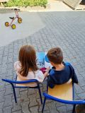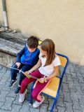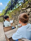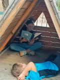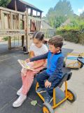 Le mardi 9 septembre, les grands ont lu des histoires aux petits et aux moyens. Tout le monde s'est régalé à écouter ou à lire des histoires sous le soleil.