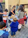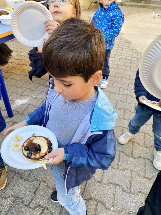 Vendredi a eu lieu le dernier atelier pour la semaine du goût. Chacun a fait du food art. La classe des grands a préparé des pancakes et ensuite, chacun a décoré son pancake avec des fruits.
